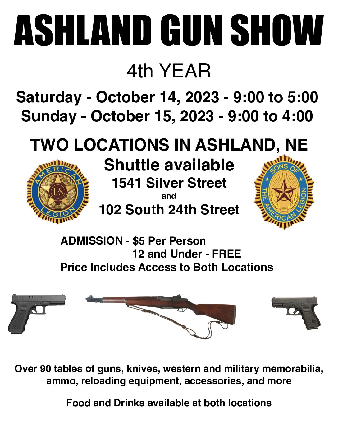 Will be held at the Ashland American Legion, 102 South 24 Street and 1541 Silver Street. Gun shows helps to support the American Legion and Sons of the American Legion.