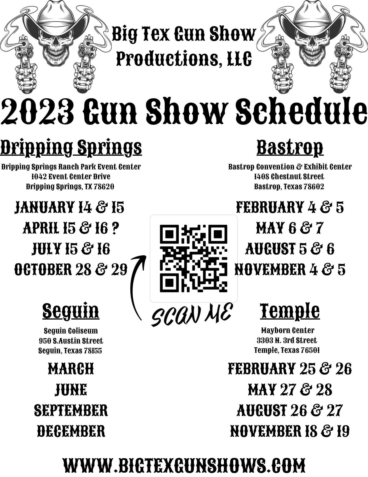 The Bastrop Gun Show currently has no upcoming dates scheduled in Bastrop, TX. This Bastrop gun show is held at Bastrop Convention & Exhibit Center and hosted by Big Tex Gun Show Productions. All federal and local firearm laws and ordinances must be obeyed.