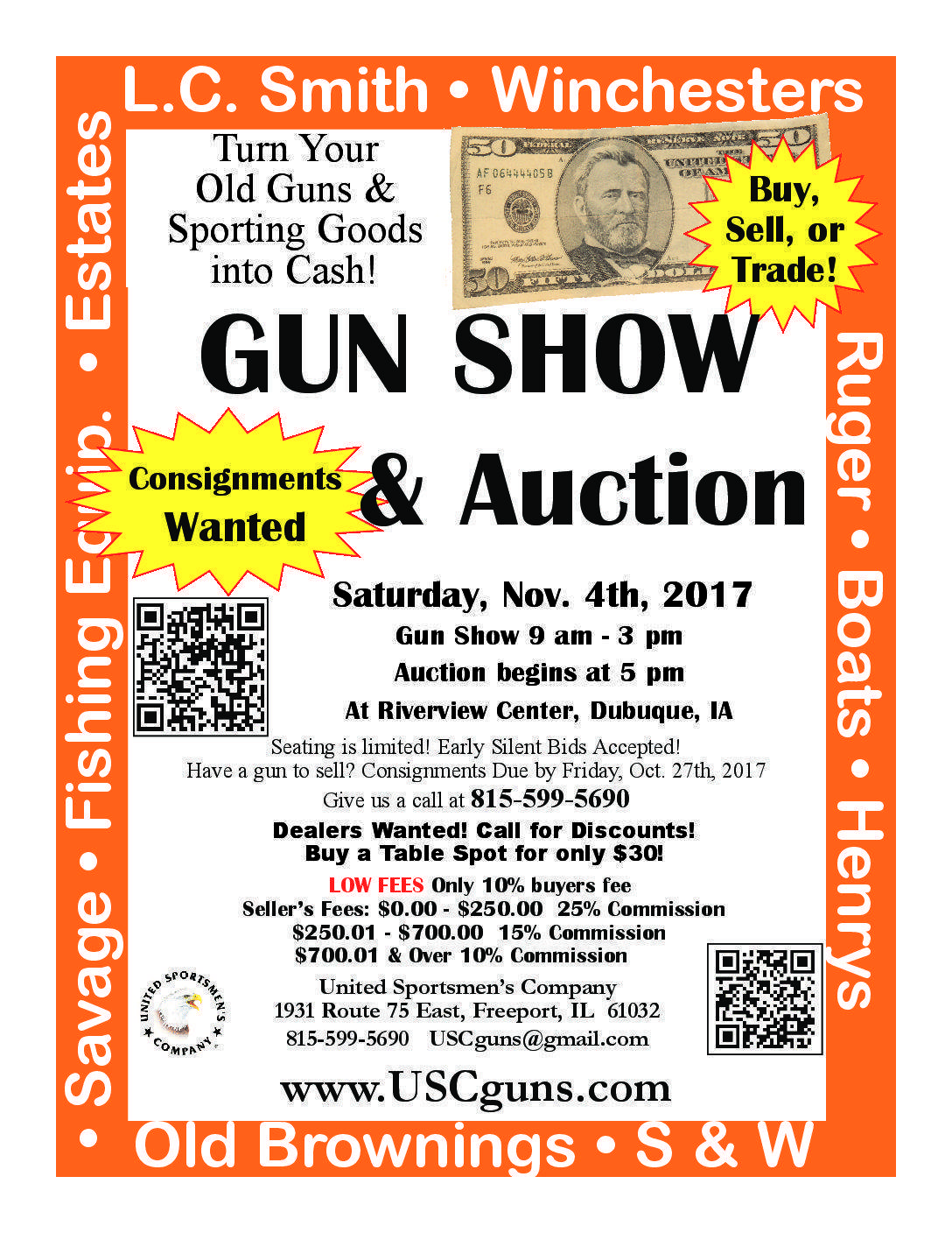 The USC Gun Show & Auction currently has no upcoming dates scheduled in Dubuque, IA. This Dubuque gun show is held at Grand River Center and hosted by United Sportsmen's Company (USC). All federal and local firearm laws and ordinances must be obeyed.