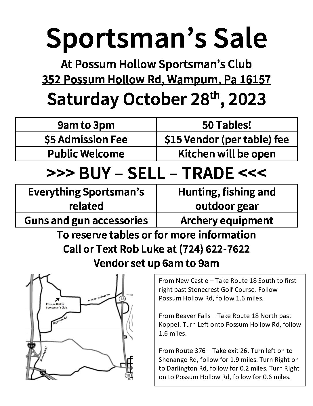 The Wampum Sportsman’s Sale currently has no upcoming dates scheduled in Wampum, PA. This Wampum gun show is held at Possum Hollow Sportsman's Club and hosted by Possum Hollow Sportsman's Club. All federal and local firearm laws and ordinances must be obeyed.