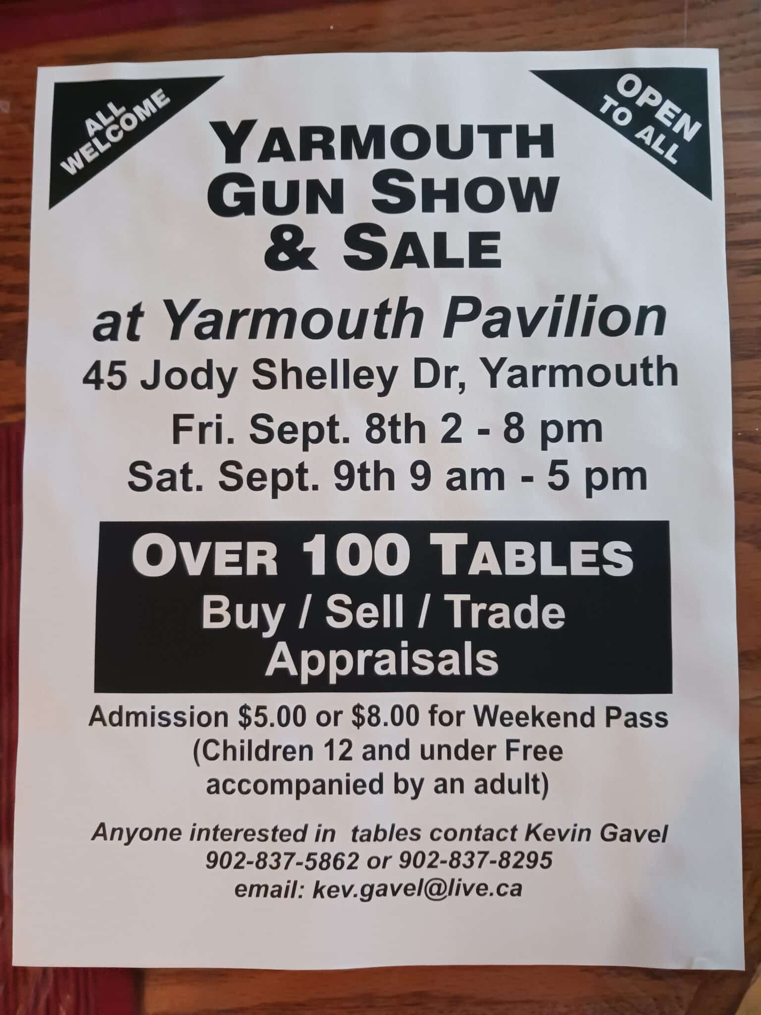 The Yarmouth Gun Show and Sale currently has no upcoming dates scheduled in Yarmouth, NS. This Yarmouth gun show is held at Mariners Center and hosted by Kevin Gavel. All federal and local firearm laws and ordinances must be obeyed.