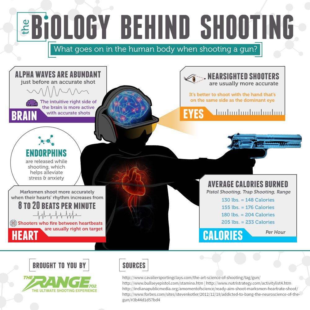 Your body goes through several changes while shooting a gun. These include increased brain activity and heart rate. In addition, your body has to process everything your doing in order to line up the shot.